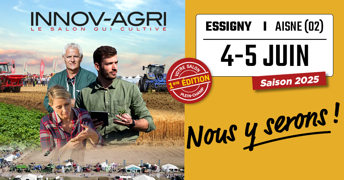 Innov Agri – Essigny 14 mai 2025 Actualités Retrouvez nous à Innov-Agri, le salon qui cultive, à Essigny-le-Grand (Aisne) les 4 & 5 juin 2025